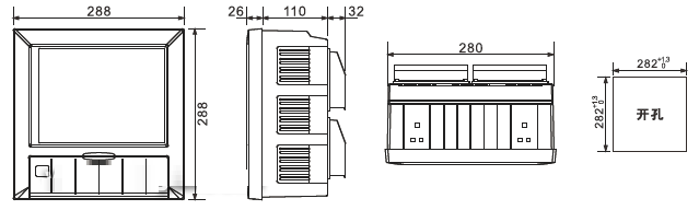 注:JSML-3000 40通道彩色無(wú)紙記錄儀通用輸入數(shù)+頻率輸入+傳動(dòng)輸出+PID控制輸出≤40。四十通道彩色無(wú)紙記錄儀儀表外形尺寸、安裝方法及開(kāi)口尺寸。開(kāi)口尺寸:282×282彩色無(wú)紙記錄儀尺寸圖。40通道彩色無(wú)紙記錄儀接線方式。彩色無(wú)紙記錄儀的連接方式。彩色無(wú)紙記錄儀接線圖。