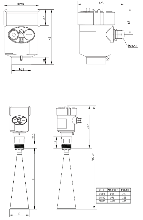 三、雷達(dá)物位計(jì),液位計(jì)結(jié)構(gòu)尺寸