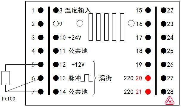 B、流量(脈沖)、溫度(Pt100)和電源的接線方法