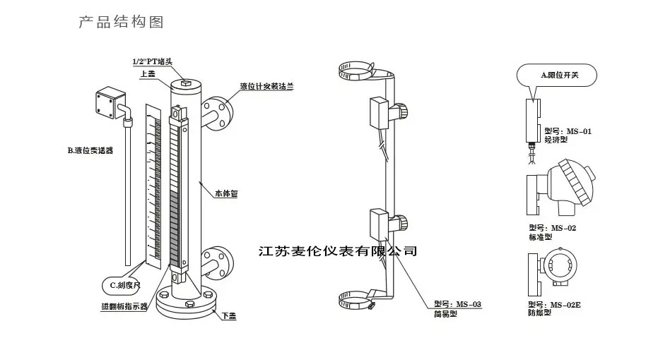 遠(yuǎn)傳磁翻板液位計(jì)由本體(由上下導(dǎo)管組成)、翻板箱(由紅、白磁性小翻板組成)、浮子(由磁鐵、頂桿、浮筒組成)和液位變送器組成。其工作原理是:容器中的浮標(biāo)(根據(jù)不同介質(zhì)和壓力開發(fā))隨著下導(dǎo)管中液位高度的變化上下浮動(dòng),磁鐵通過頂桿在上導(dǎo)管中上下移動(dòng),使身體外的活門翻轉(zhuǎn),并顯示紅白兩色以指示液位高度。同時(shí),液位變送器將液位信號(hào)傳輸至控制中心進(jìn)行液位指示和控制,也可由計(jì)算機(jī)