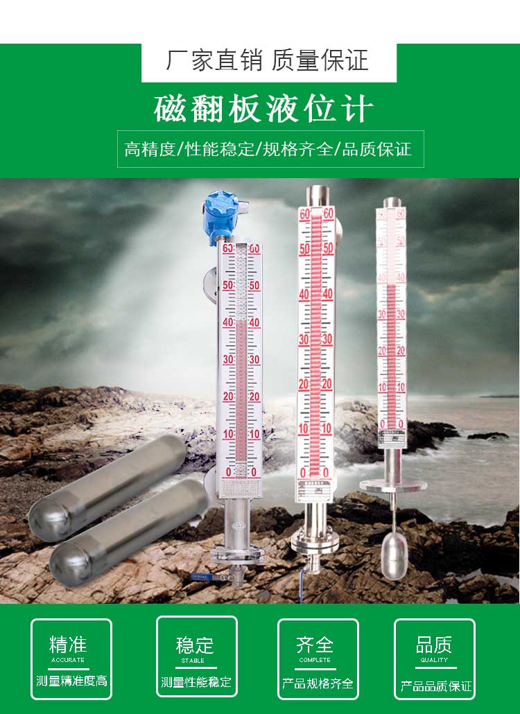 高溫高壓磁翻板液位計(jì)的應(yīng)用:高溫高壓磁翻板液位計(jì)采用獨(dú)特的散熱方式散熱,使儀器的工作溫度得到有效控制,有效避免了磁性元件因溫度過高而退磁的發(fā)生。高溫高壓磁翻板液位計(jì)拓寬了磁翻板的使用范圍,主要用于測量高壓高溫下的液位,更**、可靠地滿足電力、供熱、供氣等行業(yè)的液位測量要求。在實(shí)際應(yīng)用中,一般需要根據(jù)液體化學(xué)性質(zhì)的不同,選用不同材質(zhì)的浮子。根據(jù)液體密度的不同,選擇不同體積和重量的浮子與之匹配,以達(dá)到更好的測量精度。