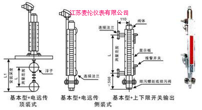 磁翻板液位計(jì)的主要技術(shù)指標(biāo)。范圍(mm):300~19000;中等密度(g/cm3):0.5~2。Medium viscosity: ≤ 0.02Pa.S.工作溫度:-40 ~ 350.壓力等級(jí)(MPa):≤32Measurement accuracy (mm): ≤ ± 10.、安裝:側(cè)裝、頂裝、底裝。