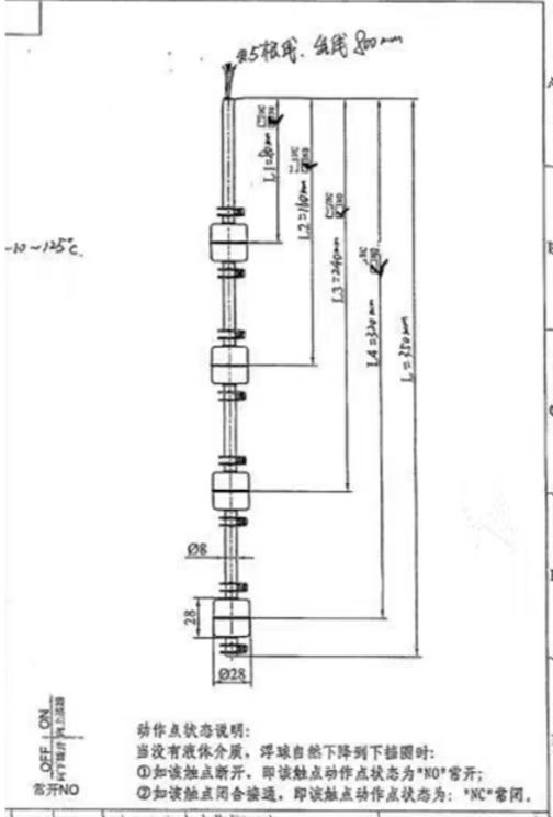 是如何工作的。在控制器中安裝了多個(gè)GAG-5大功率磁簧開關(guān),當(dāng)浮子配上磁鋼隨液位上下時(shí),干簧開關(guān)與之接觸動(dòng)作,從而達(dá)到控制液位的目的。模型的解釋。結(jié)構(gòu)形式(模型)。泵在高水位。低水位泵停止和DK-10可以匹配。普通蘆葦(頂部)。一個(gè)常閉簧片(下)。在高水位時(shí)停止泵。低水位泵可與DK-10配套使用。一個(gè)常閉簧片(上部)。普通簧片(下)。與DK-10電機(jī)控制箱配套自動(dòng)控制。普通蘆葦(頂部)。普通簧片(下)。上、下限液位控制及高低限位報(bào)警與DK-10可匹配。三根蘆葦。通常閉合的簧片。上、下限液位控制及高低限位報(bào)警與DK-10可匹配。通常閉合的簧片。三根蘆葦。