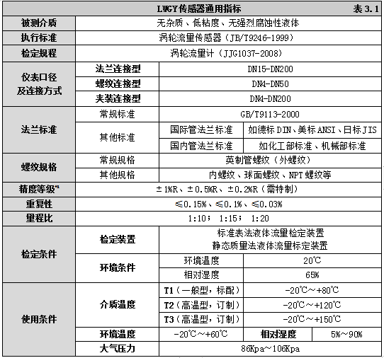 三、塑料渦輪流量計(jì)技術(shù)規(guī)格
