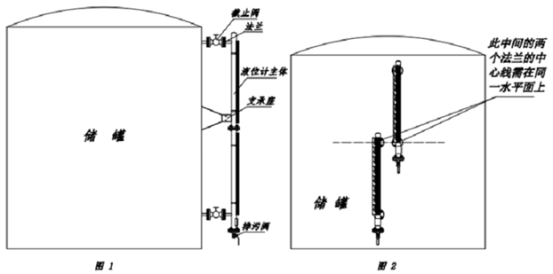 計(jì)為側(cè)裝磁翻板液位計(jì)安裝示意圖