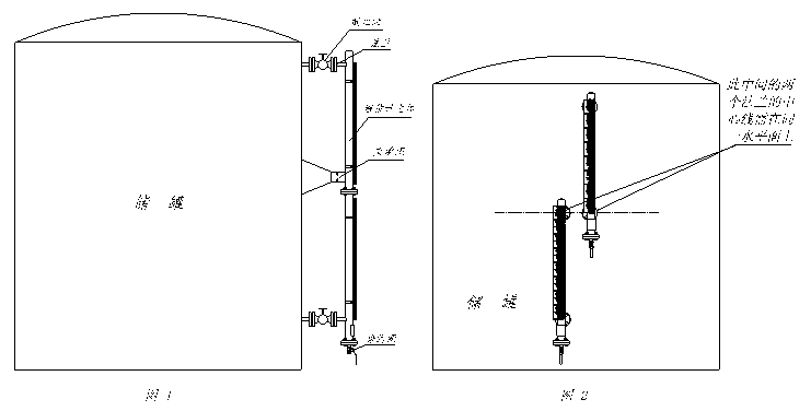 圖2所示的分段方法是采用錯位安裝的形式,使用兩臺或若干臺獨立的磁翻板液位計,在安裝時,要使下面一臺的上端過程法蘭的中心線與上面一臺的下端過程法蘭中心處在同一水平面上,以保證測量的連續(xù)性。