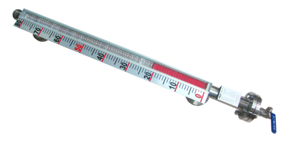 磁翻板液位計(jì)一般安裝在容器外側(cè)或頂部,即其安裝方式可選擇側(cè)裝或者頂裝。對(duì)于封閉式的容器而言,可根據(jù)現(xiàn)場(chǎng)需求加裝排污閥。磁翻板液位計(jì)的測(cè)量主管一般采用無縫鋼管,且連接管處采用無縫焊接,使其密封性大大增強(qiáng),十分適合用于高溫、高壓、耐腐蝕,甚至危險(xiǎn)場(chǎng)合的測(cè)量。磁翻板液位計(jì)的面板具有度數(shù)直觀、醒目、可視角寬等特點(diǎn),其結(jié)構(gòu)緊湊合理、安全可靠,無“跑、冒、滴、漏”等現(xiàn)象,還具有維護(hù)簡(jiǎn)便、維護(hù)成本低等優(yōu)點(diǎn)。磁翻板液位計(jì)所具有的指示功能無須額外供電,即當(dāng)電力供應(yīng)發(fā)生故障時(shí),也絲毫不會(huì)對(duì)其工作效果產(chǎn)生影響,可謂經(jīng)濟(jì)環(huán)保的理想型液位檢測(cè)儀表。可在測(cè)量主管上加裝磁開關(guān),使其輸出開關(guān)信號(hào)或模擬量信號(hào),更加便于控制液位高度。磁翻板液位計(jì)有側(cè)裝和頂裝兩種安裝方式,無論哪種方式都可以配置干簧管遠(yuǎn)傳變送器及磁開關(guān),由此達(dá)到液位計(jì)遠(yuǎn)距離傳輸,及實(shí)時(shí)就地顯示、監(jiān)控的效果,測(cè)量方便快捷,大大提高作業(yè)效率。與磁開關(guān)和干簧管遠(yuǎn)傳變送器配套使用的磁翻板液位計(jì)又被稱為遠(yuǎn)傳型磁翻板液位計(jì)。