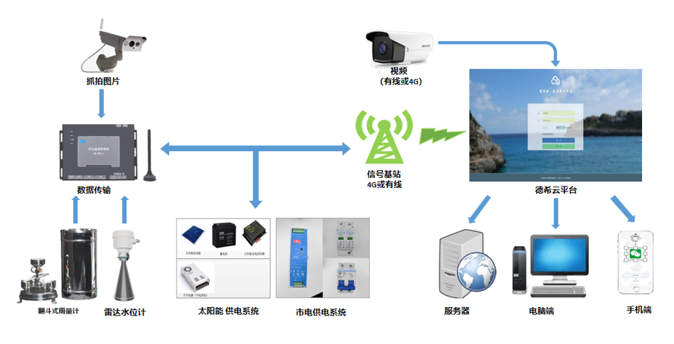 系統(tǒng)概述:水庫河道生態(tài)流量監(jiān)測系統(tǒng)適用于遠(yuǎn)程監(jiān)測河流、水庫等的實(shí)時(shí)水雨情狀況,管理部門可通過該系統(tǒng)及時(shí)掌握河流的降水、斷面水位等流域水文狀況,從而及時(shí)作出管理決策。
