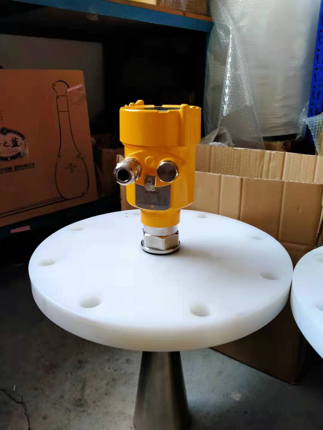 則雷達(dá)液位計(jì)的測(cè)量精度將受到影響;基于100~150mm控制罐底板與導(dǎo)波管底距離,同時(shí)設(shè)置雷達(dá)反射板(傾斜45°);為實(shí)現(xiàn)導(dǎo)波管內(nèi)外等液位,導(dǎo)波管交叉開孔需間隔距離,同時(shí)還需要存在內(nèi)平面平滑的導(dǎo)波管,否則虛假液位的現(xiàn)象很容易出現(xiàn)。過(guò)小或過(guò)大情況均不得出現(xiàn),否則將導(dǎo)致導(dǎo)波管內(nèi)外液位無(wú)法一致,或管內(nèi)液位出現(xiàn)波動(dòng)。需基于導(dǎo)波管直徑控制開孔尺寸,DN125、DN200、DN250、DN300直徑的導(dǎo)波管開孔尺寸應(yīng)分別為0.1m2、0.4m2、0.8m2、1.2m2。考慮到測(cè)量精度直接受到安裝位置影響,因此具體安裝重點(diǎn)關(guān)注了六方面內(nèi)容。**,需保證15%的儲(chǔ)罐底板與雷達(dá)液位計(jì)安裝法蘭面間高度小于雷達(dá)液位計(jì)儲(chǔ)罐開口位置離開儲(chǔ)罐內(nèi)壁距離,該限制在使用導(dǎo)波管時(shí)可以忽略;第二,為保證進(jìn)入儲(chǔ)罐內(nèi)部的信號(hào)波不受到阻礙,雷達(dá)液位計(jì)接口的連接管及法蘭需存在250mm內(nèi)的總長(zhǎng)度;第三,在應(yīng)用導(dǎo)波管時(shí),需保證導(dǎo)波管垂直向下并存在≤0.5°的偏差及±1°的水平度;第四,為規(guī)避波動(dòng)位移,需充分考慮安裝時(shí)的儲(chǔ)罐頂板強(qiáng)度;第五,應(yīng)避過(guò)內(nèi)部障礙物設(shè)置雷達(dá)波路徑,攪拌器、加熱管、支撐架帶來(lái)的影響均需要得到重視;第六,需關(guān)注液位條件帶來(lái)的影響,如避開進(jìn)料口產(chǎn)生的泡沫及紊流。